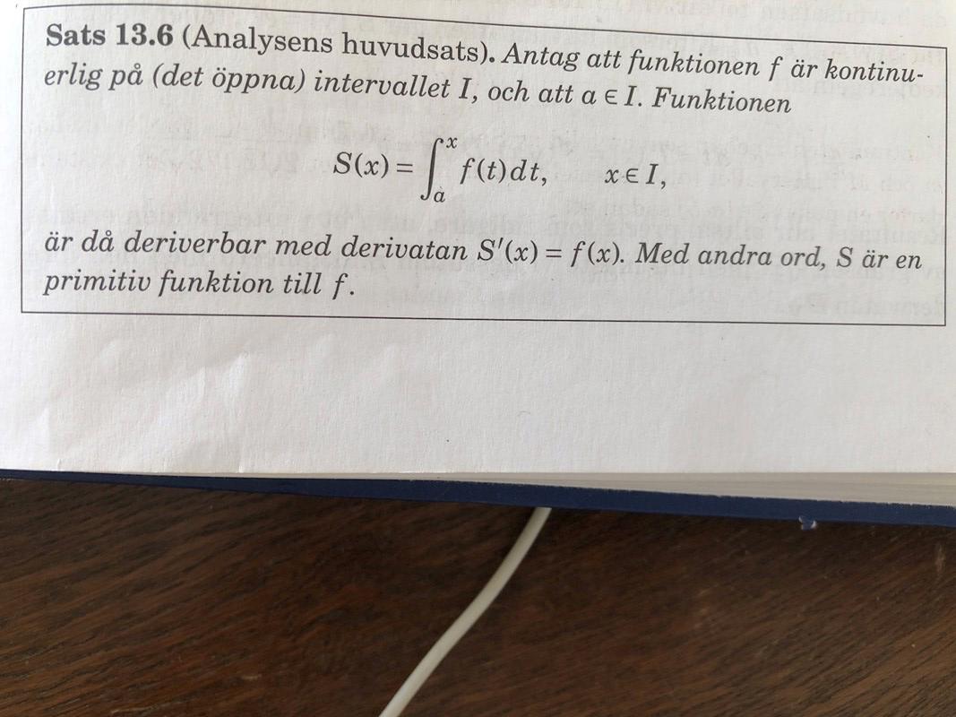 Varför vill jag räkna ut detta? Varför behöver jag derivera? Det känns som att jag har missförstått Analysens huvudsats. När jag kollar på satsen tycker jag att vi får: