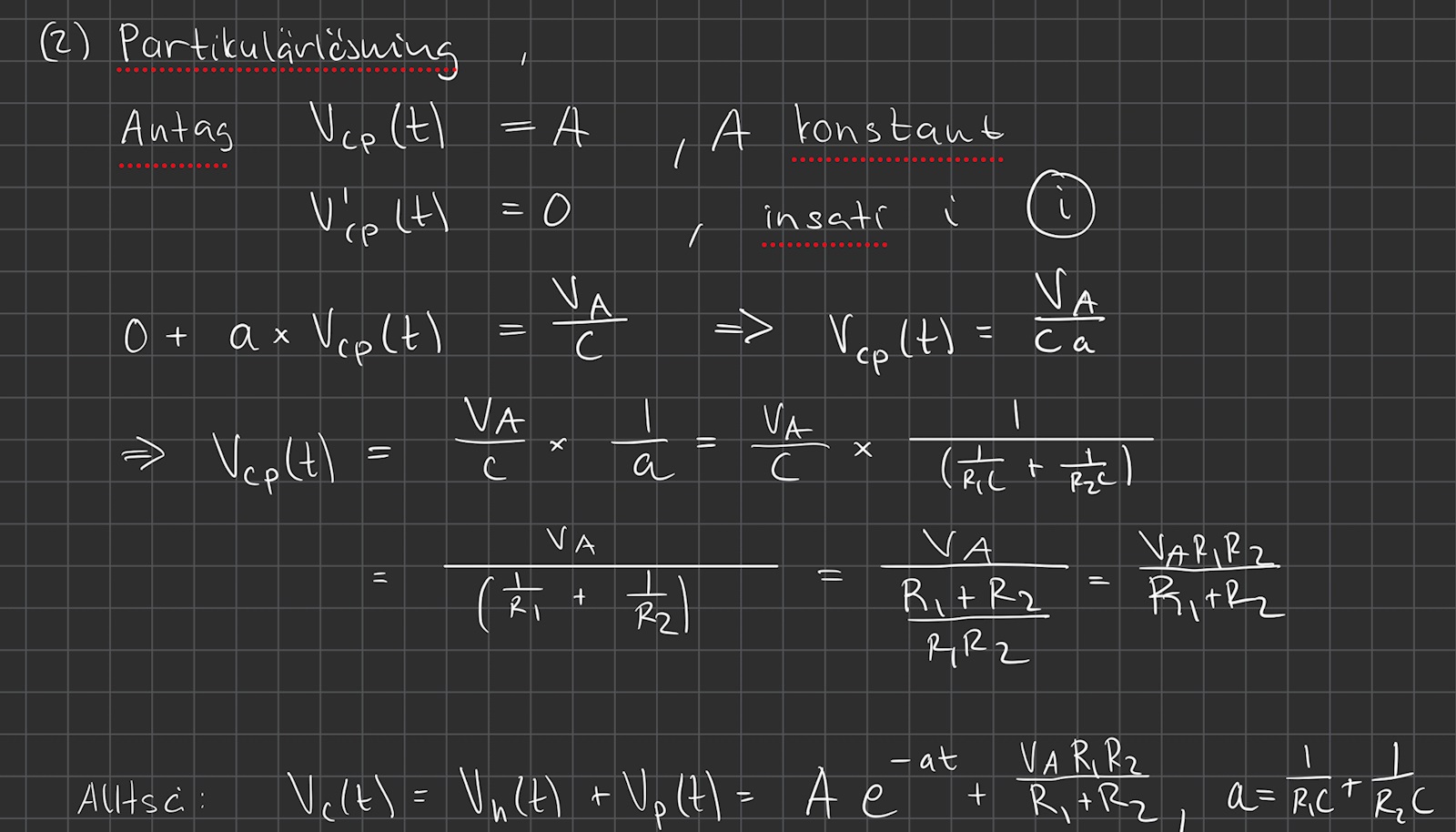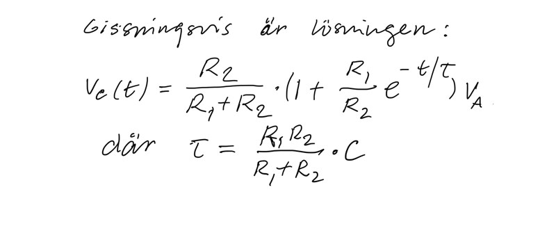 Jag tänker att efter ett tag (t → ∞) så borde potentialen över R2 att vara ekvivalent med Vc .