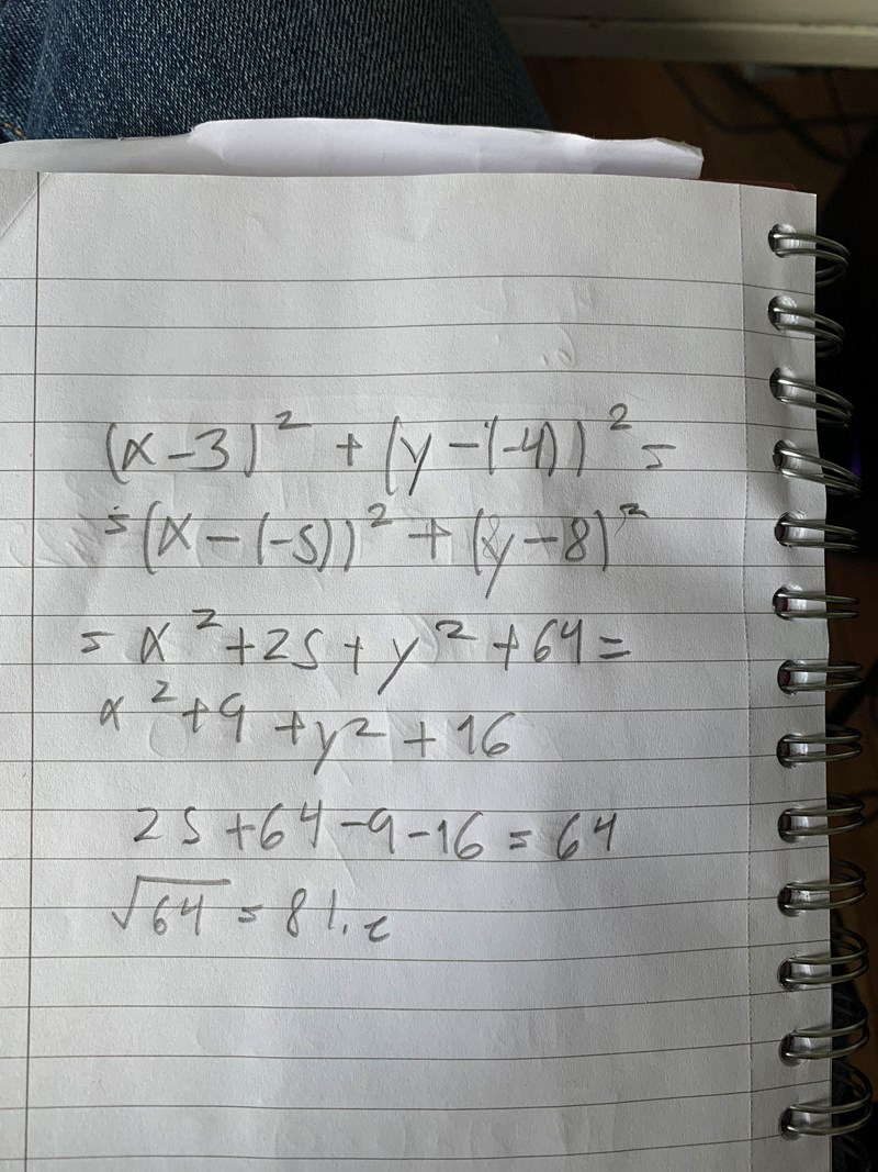 Jag har löst ut med hjälp av avståndsformeln hur långt bort P är från dessa, 8 l.e var, men förstår inte hur jag ska fortsätta.