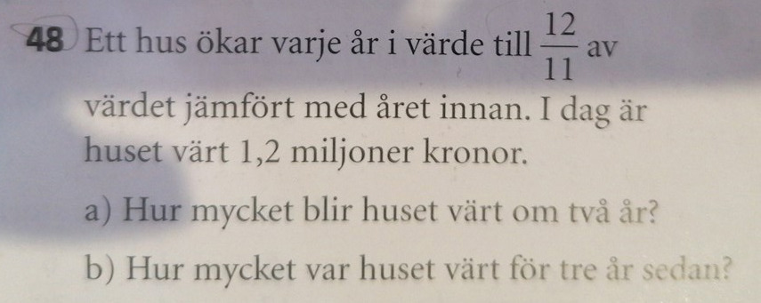 Du kan använda formeln , där a är förändringsfaktorn, C är det nuvarande priset på huset och x är antal år.
