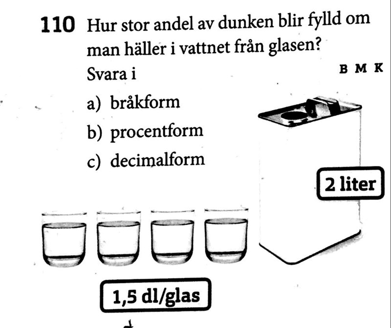 Hur stor andel av dunkens volum 2 liter (20 dl) motsvar det?