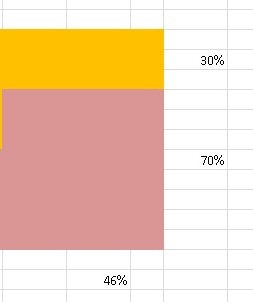 Kalla längden på min pil för P, så kan du räkna fram gult och rött "under pilen" som en andel av T. Det blir samma beräkningar som nyss, fast med P i stället 46%.