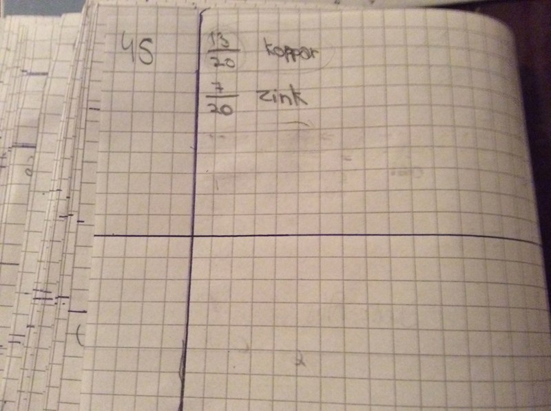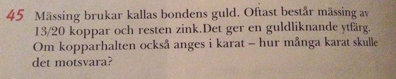Så i detta fall kopparhalten = 13/20 skall göras om till x/24