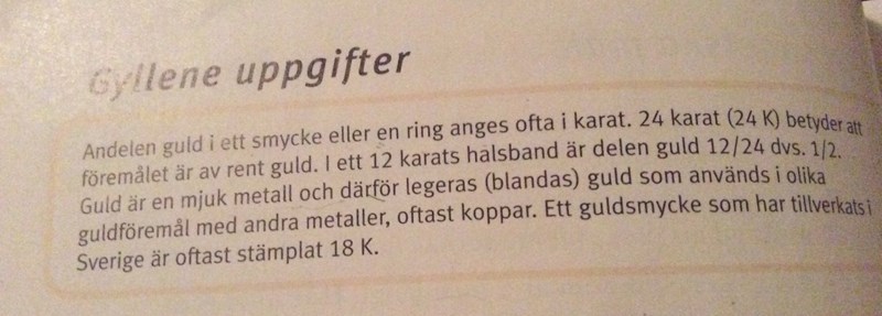 "Om kopparhalten också anges i karat - hur många karat skulle det motsvara?"