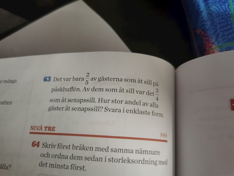 Försök först hitta den minsta gemensamma nämnaren mellan bråktalen , vilket i ditt fall är 20. Då kan du skriva om antalet gäster som äter sill till;