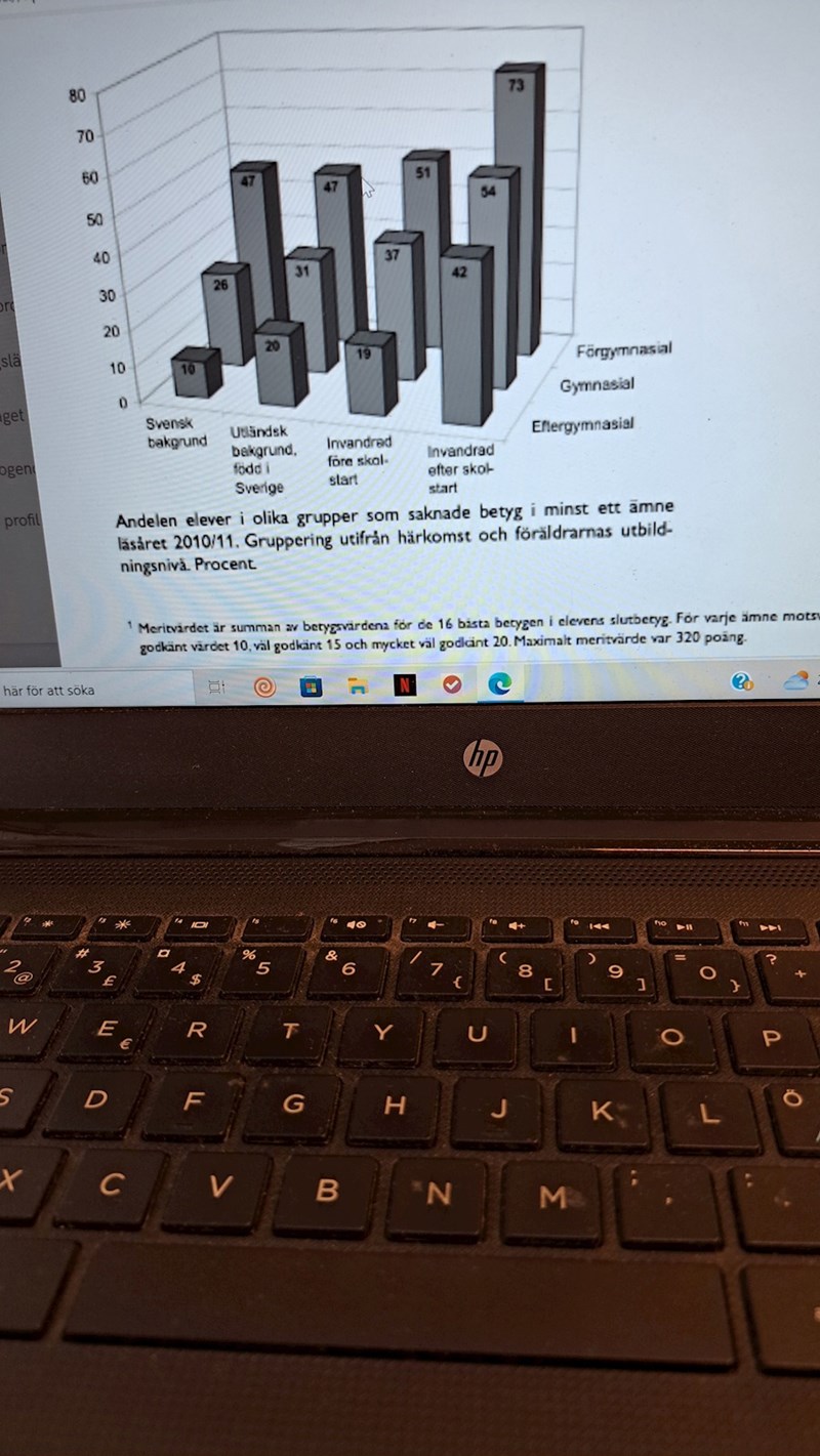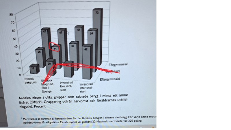 Jaha okej men då avläste jag fel. Jag tittade på svensk bakgrund 26% där föräldrarna hade gymnasial utbildning och 47% med utländsk bakgrund där föräldrarna hade förgymnasial utbildning. Varför valde du 31% förresten?