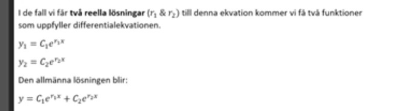 Har du lärt dig att det finns tre olika typer av andra ordningens diffekvationer, och man skiljer dem åt genom att man löser deras karakterisktiska ekvation? Denna är en andragradsekvation.