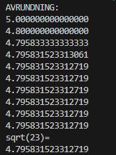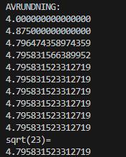 Ändra rekursionsformel så att vi får ungefärlig uppgift på roten ur 23. Konstig uppgift.