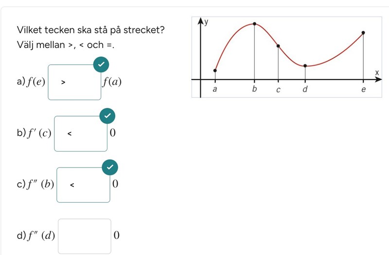 Andraderivatans tecken beskriver om funktionen är konvex eller konkav. I b ser vi att den är konkav och således är den negativ.