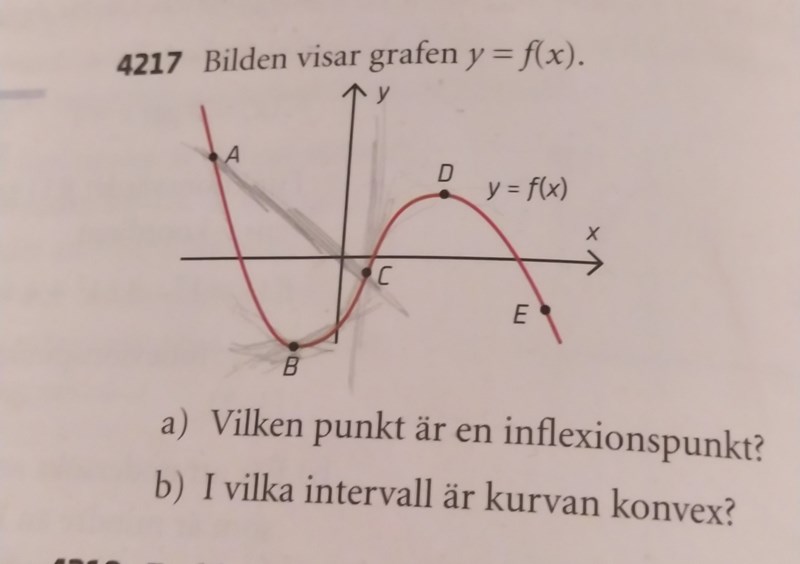lovisla03 skrev:Dr. G skrev:Att andraderivatan är positiv i en punkt betyder att förstaderivatan ökar.