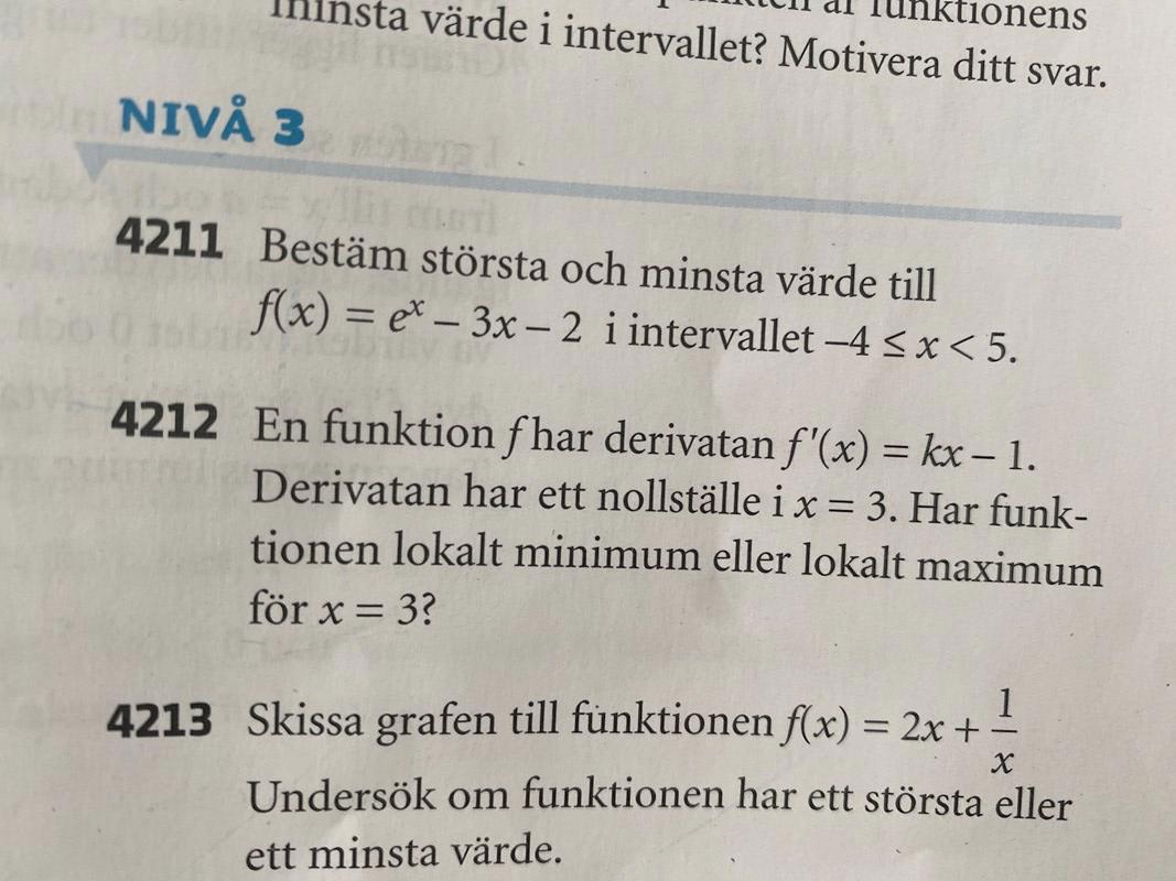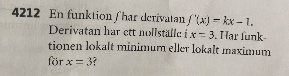 Ja, blev osäker för när förökte lösa följande uppgift med hjälp av andraderivatan blev det fel: