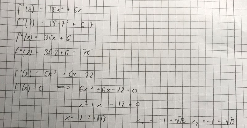 Du räknar med att förstaderivatan är när du tidigare (korrekt) skrivit att förstaderivatan är Jag förstår inte varför du gör detta.