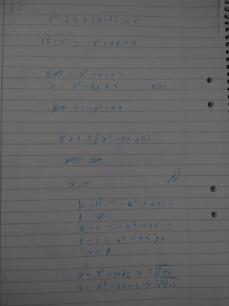 Dracaena skrev:Abs(x-1) är x-1 om x>1 och -x+1 om x < 1, så de två ekvationerna du ska lösa är: