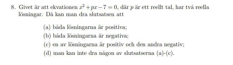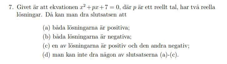 Liksom jag testa väldigt hög och låg tal och insåg att båda svaren blev negativa men svar d) är det rätta.