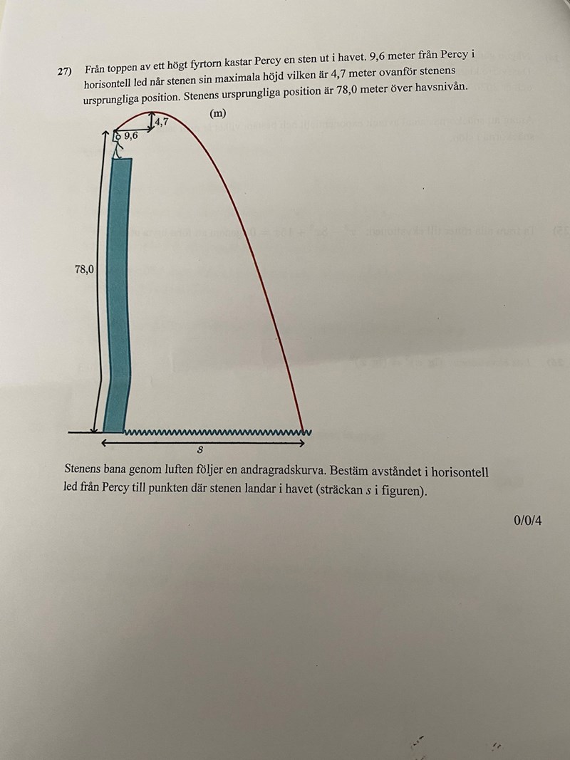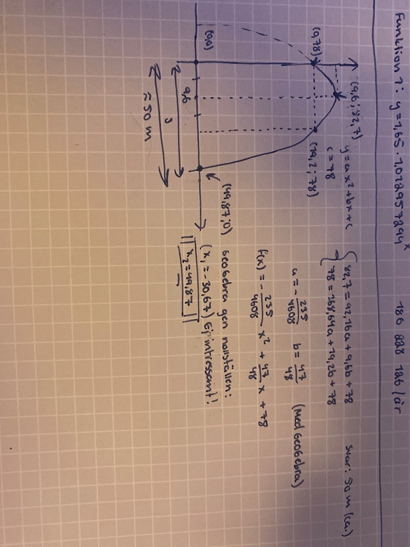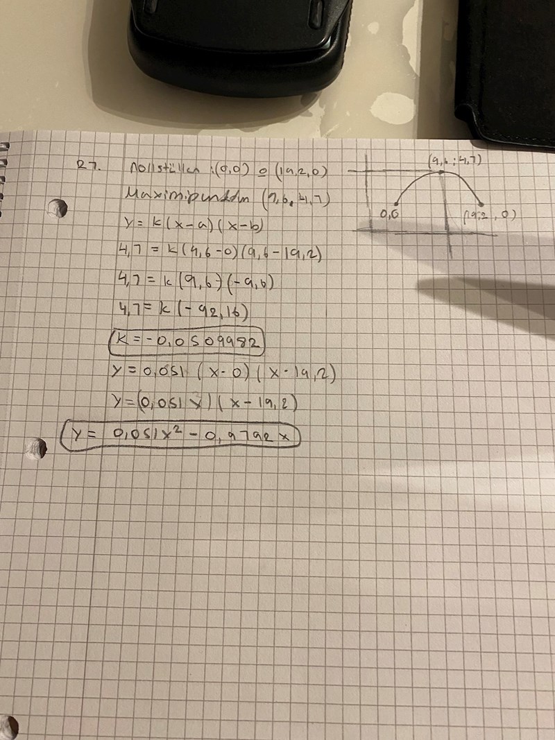 - Är du med på att de tre intressanta punkterna är (0; 0), (9,6; 4,7) och (19,2; 0)?