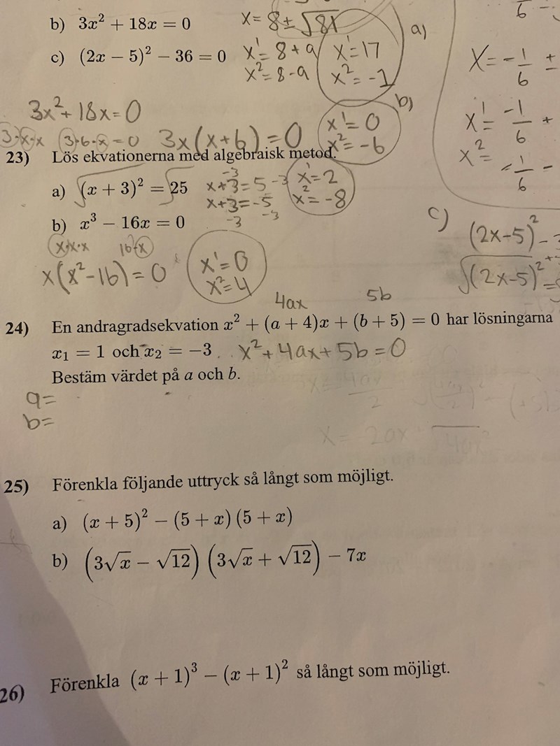 Hej. Hade gärna velat ha hjälp med denna uppgift. Jag har försökt göra det om till pq form men det funkar inte. Förstår inte riktigt hur jag ska göra. Uppgift 24