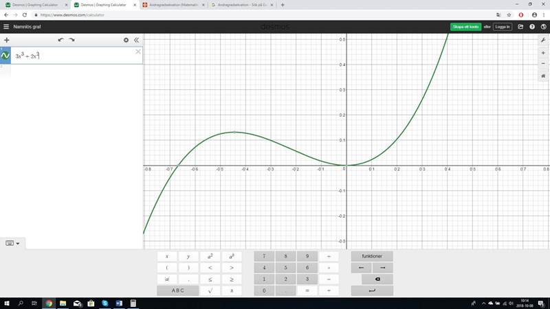 Det är en uppgift där jag ska ta reda på de två extrempunkterna från funktionen f(x)=3x3+2x2