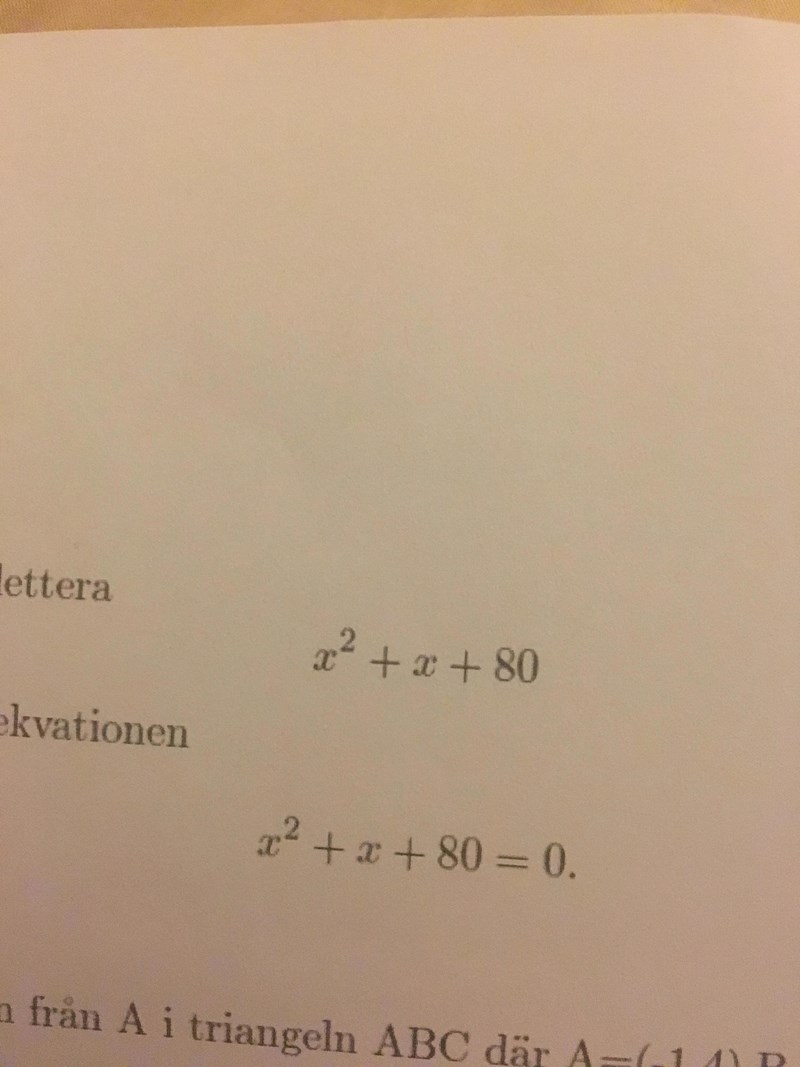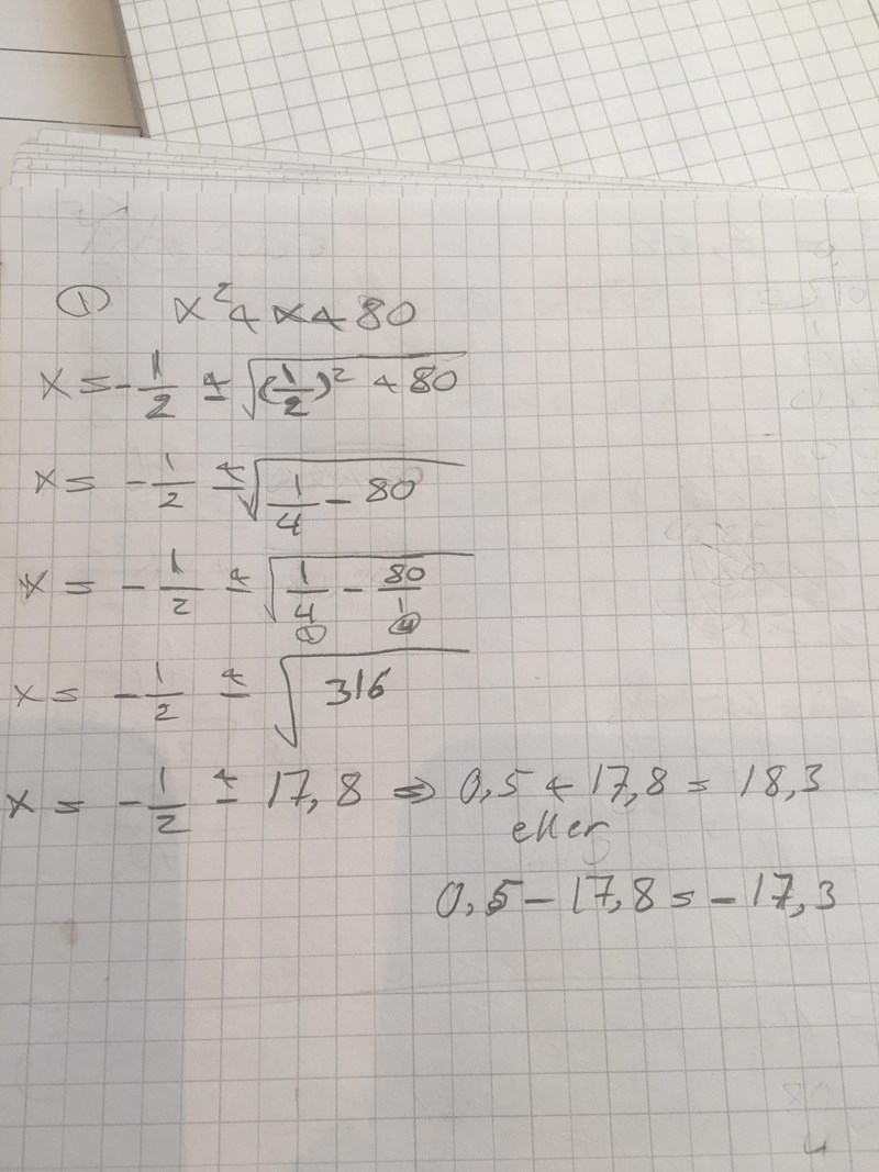Jag fastna på denna uppgiften.. jag har provat med andragradsekvation formeln men det ser jätte konstigt ut! Hur man gör/tänker?