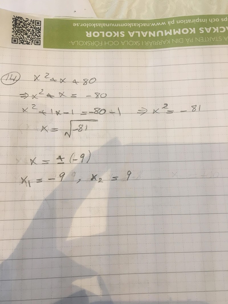 Har en fråga här som man kvadratkomplettera och sen lösa ekvationen! Vet inte om jag tänkt/löst rätt?