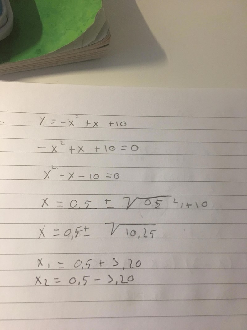 Skulle du hitta rötterna, eller en extrempunkt? Extrempunkten ligger mitt emellan nollställena, men det är en maximipunkt, inte minimipunkt.