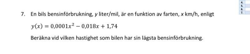 bilens hastighet vid lägsta bensinförbrukningen väl? vet inte riktigt hur så körde bara på pq-formeln