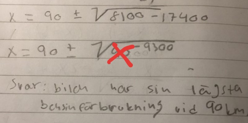 Om du vill veta bensinförbrukningen så kan du använda x=90 och sätta in i formeln du hade från början.