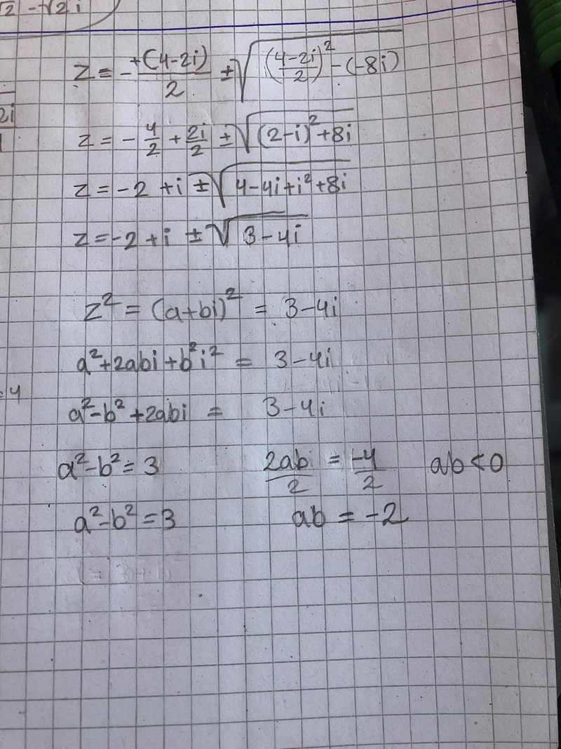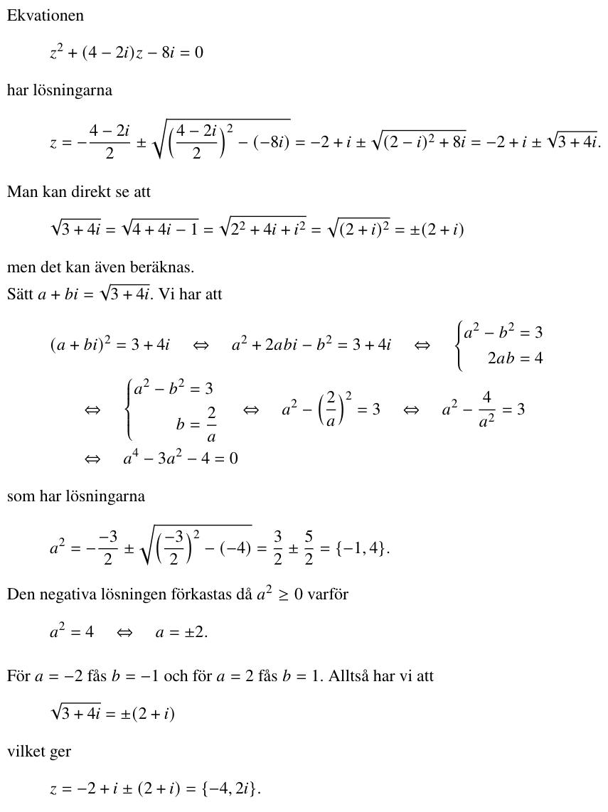 Är det z2 + (4-2i)z - 8i = 0 du ska lösa ?