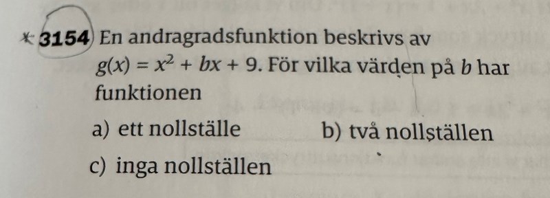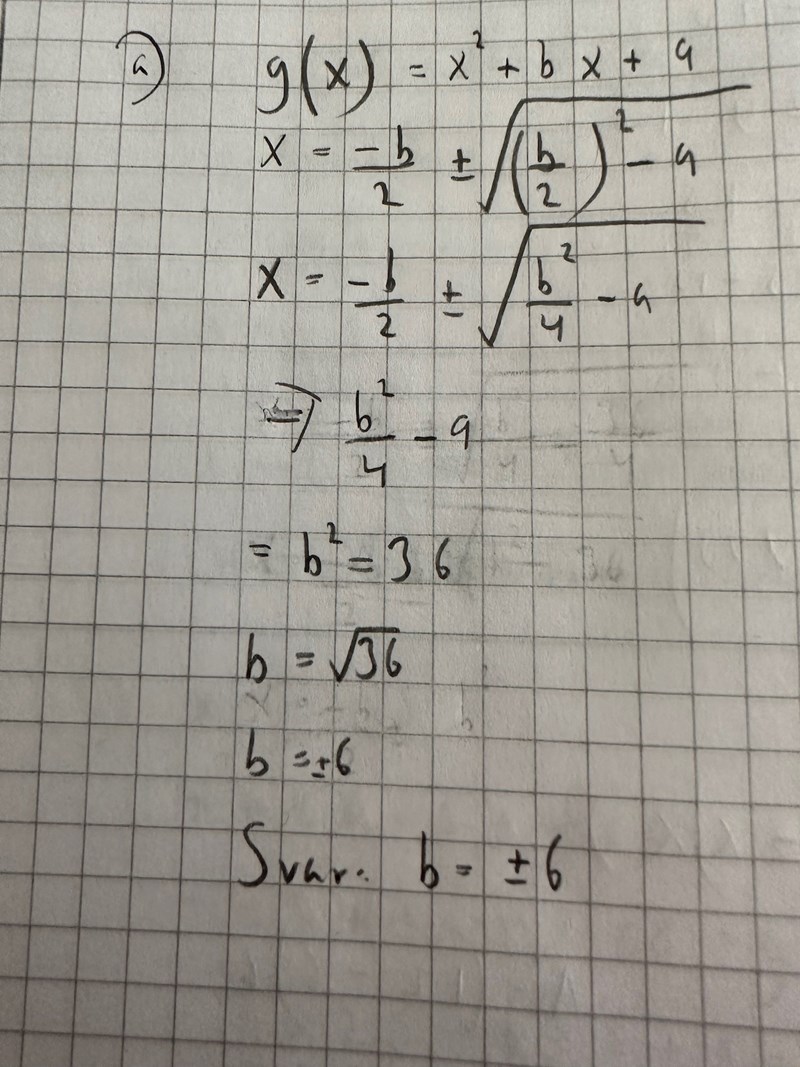 Andragradsekvation, för vilka värden på b har funktionen?
