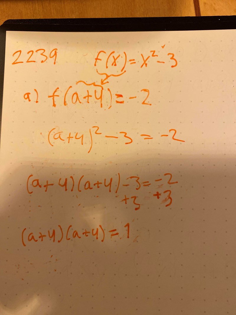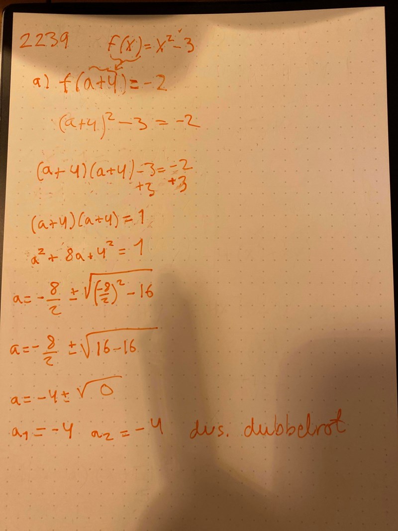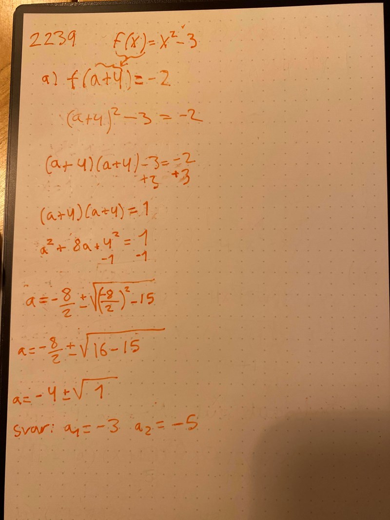 Tycker du förenklar bra, fortsätt förenkla uttrycket genom att utveckla parenteserna.I facit är det a^1 = -5 och a^2 = -3 ? fattar inte vad jag gjort fel SKOJAR ! JAG fattar för att göra pq formeln måste produkten vara 0 först!