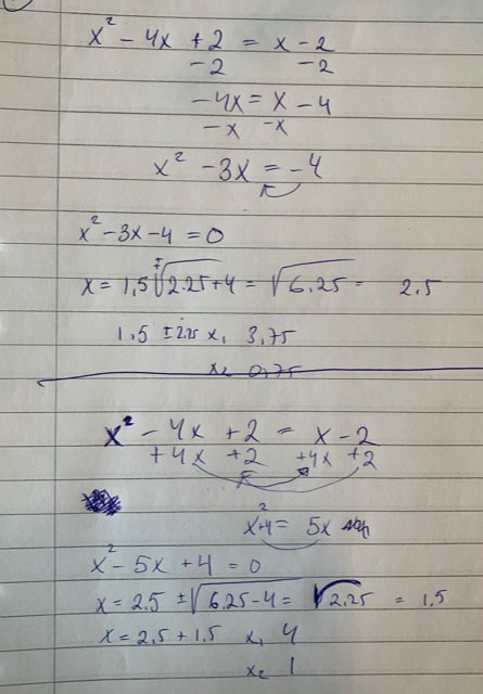 Du har minskat båda leden med x. Då får du inte -3x i vänster led, utan -5 x.