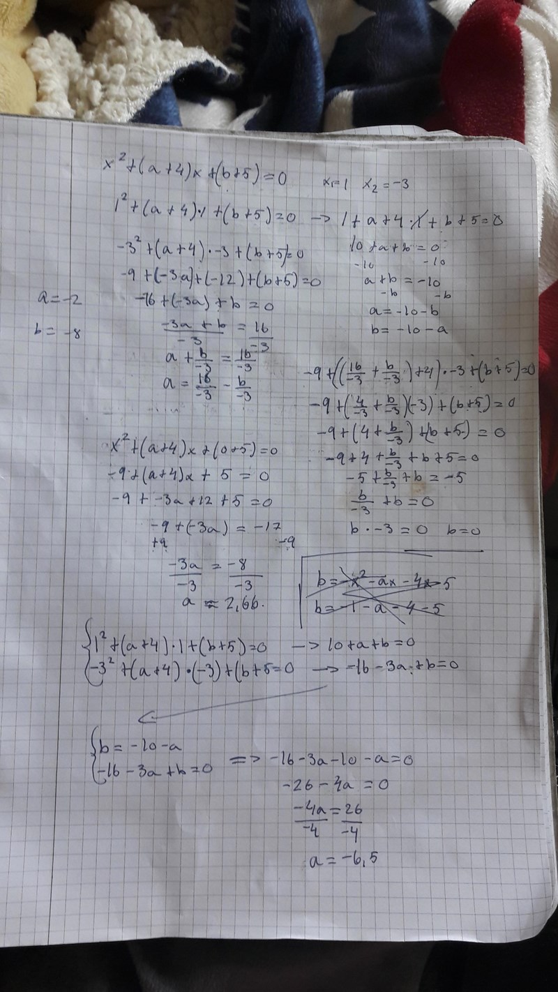 "En andragradsekvation x^2 + (a+4)x + (b+5)= 0 har lösningarna