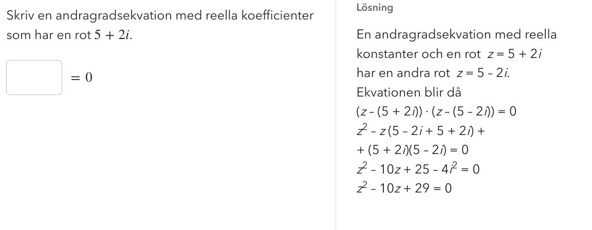 jag förstår inte den här.... alls. jag vet vad konjugatet är men varför tar man z-roten .... förstår inte alls vad som händer här. och hur vet man att konjugatet är den andra roten?