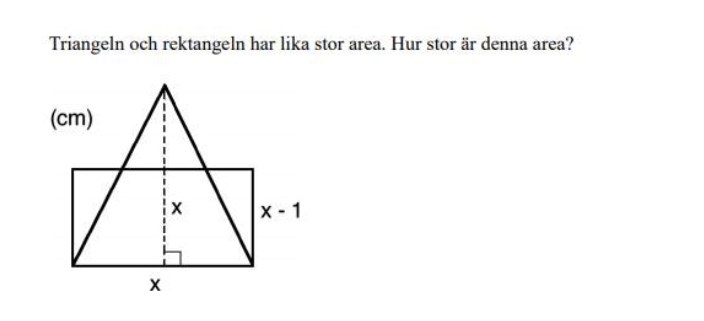 Sätt upp ett samband för triangelns area och ett för rektangelns area