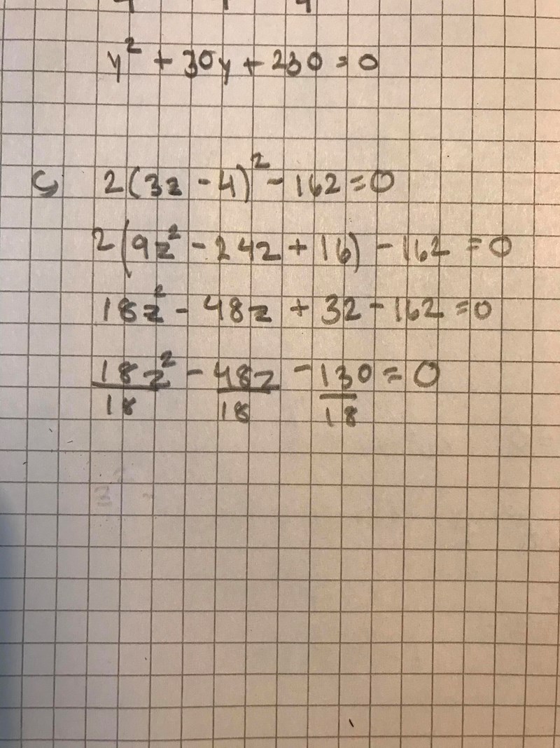 Vad är problemet? Du delar bara så får du en andragradsekvation. Du ska även skriva att du delar 0/18 och det är = 0