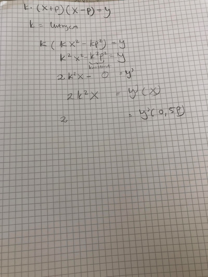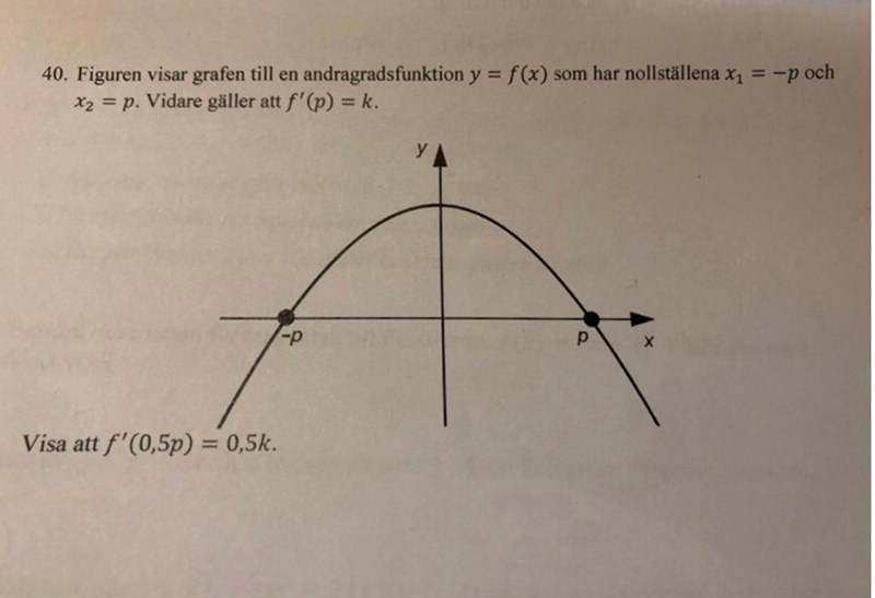 derivera y=f(x) och sätt in p i f'(x), f'(p)=k . Hur blir det? Sedan kan vi ta nästa steg.