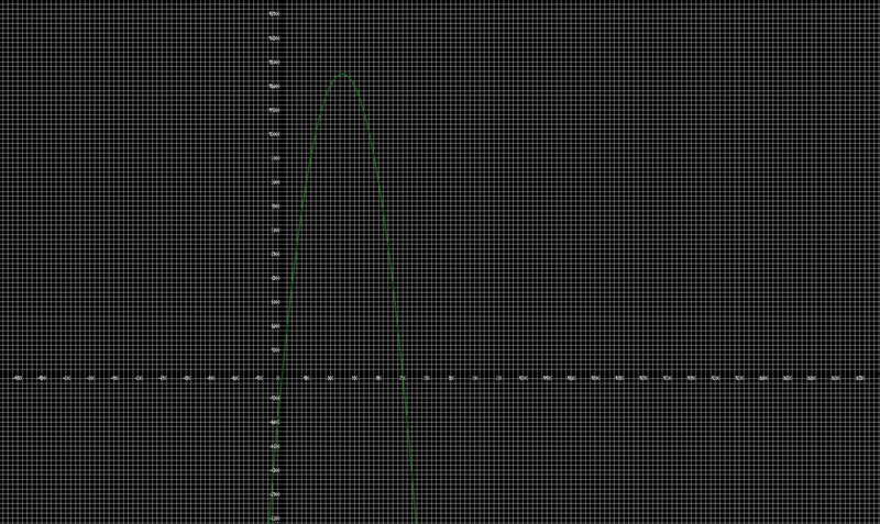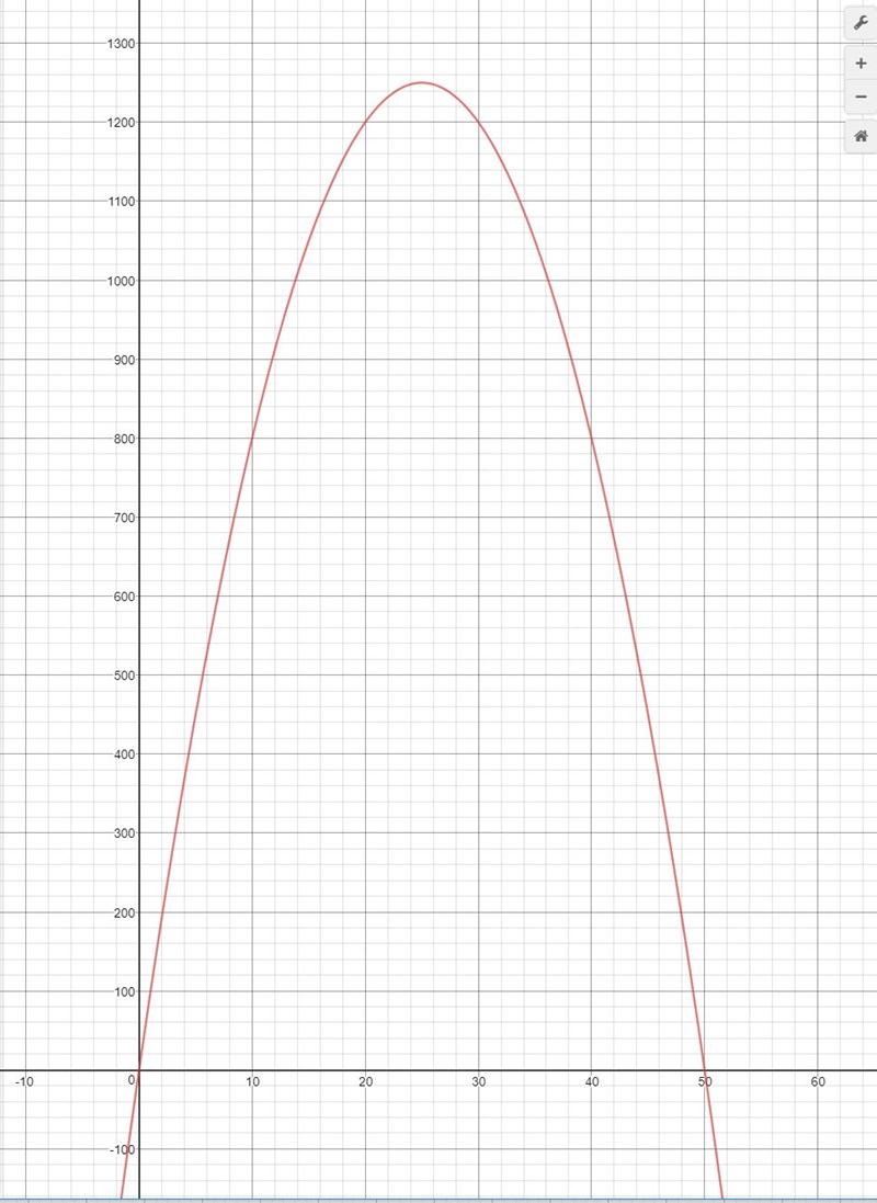 Själva grafen har en maxpunkt, x=50 där är y=1250
