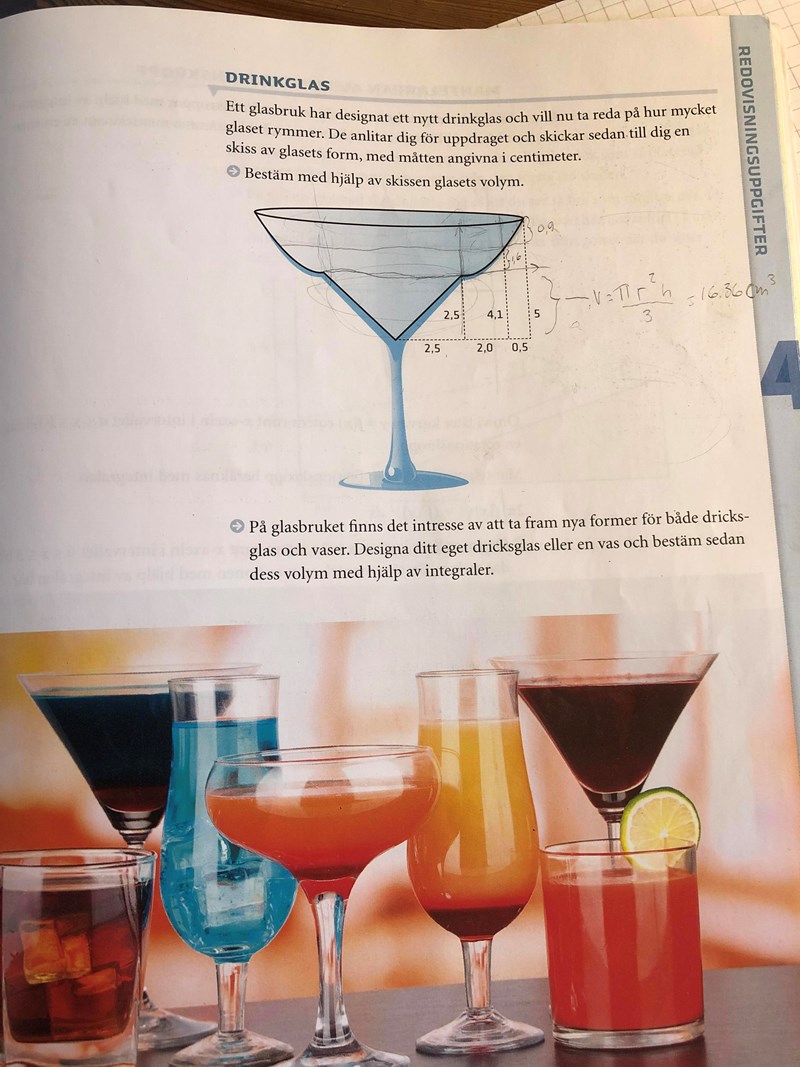 Tänker att där glaset blir rundare blir som en andragradsfunktion..? För isåfall blir väl punkterna (2,5:2,5) och (2:1,6) oså origo..? Eller är jag helt ute och cyklar hehe..