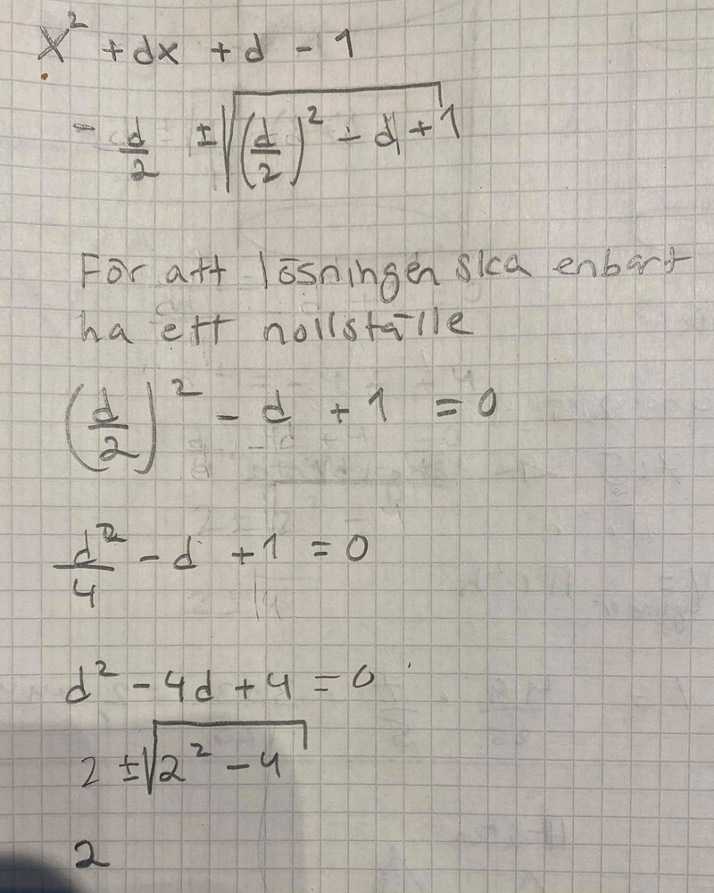 Jag har försökt lösa denna uppgift som jag hittade på nätet, dock är jag osäker om jag tänkt rätt och fått rätt svar, blir tacksam om någon kunde kolla och se om jag fått rätt svar, känns lite skumt dock att jag fått bara ett värde när det står vilka värden i frågan