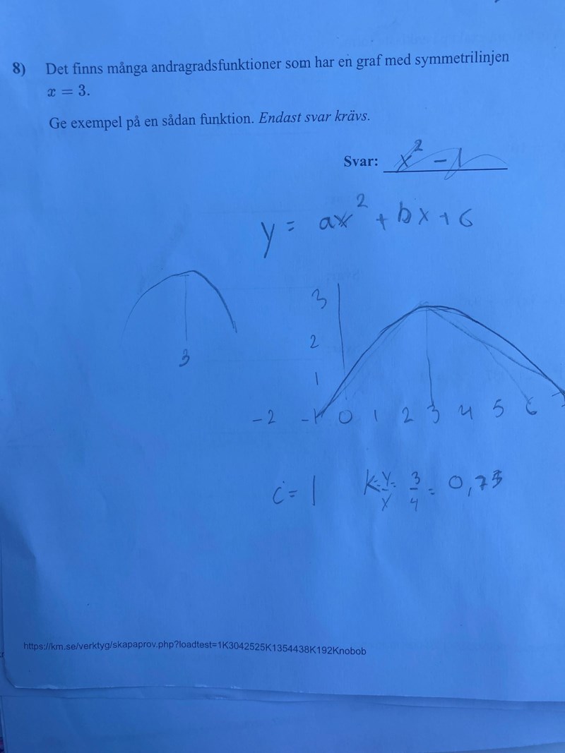 Skulle det vara rätt att svara att y = -x2 + 0,75 x + 1 ?