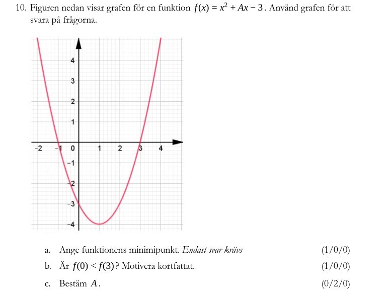 Läs av lämplig punkt i grafen och stoppa in värdena i funktionssambandet. Så får du en ekvation med bara A som obekant.