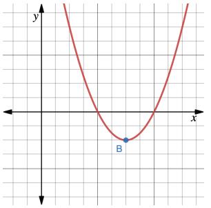 Figuren nedan visar grafen till y = x² - 6x + 8. Bestäm x-koordinaten för punkt B.