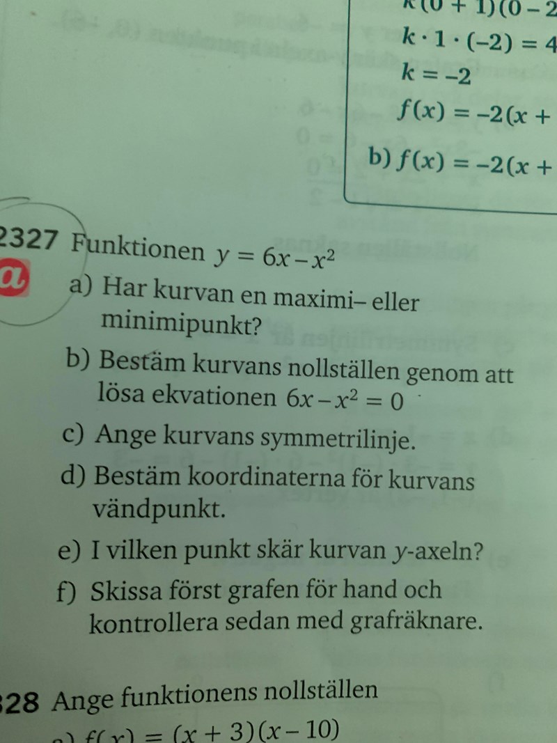På andrahradskurvor, fråga e) är det alltid y=0 då den skär ?