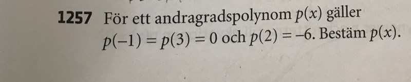 p(-1)=p(3) är båda nollställen för ett andragradspolynom som kan skriva på faktorform , använd p(2) för att bestämma vad k måste vara.
