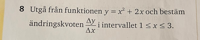 En tolkning är att du ska beräkna lutningen av den sekant som skär kurvan y = x2+2x vid x = 1 och x = 3.
