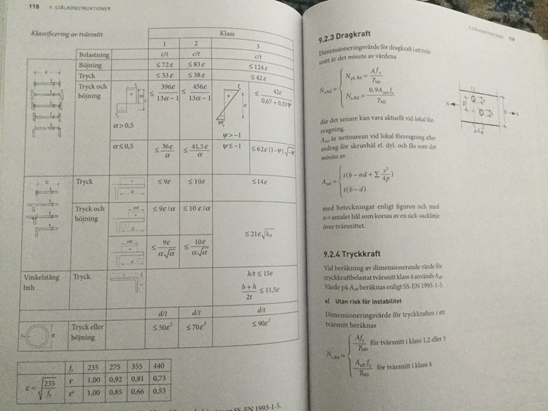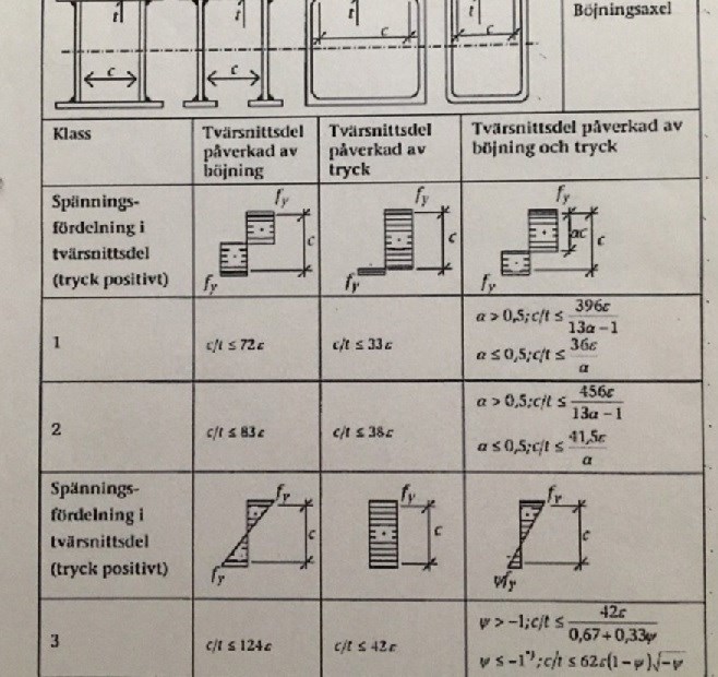 Conny i våra Formelsamling så hittade jag den sidan som har med det och göra.Det är säker samma som du har i boken jag förstår vad du menar det.i de flesta uppgifterna är det Tryck c/t 9 kontroll av fläns och böjning klass1 c/t 72 . Helt rätt
