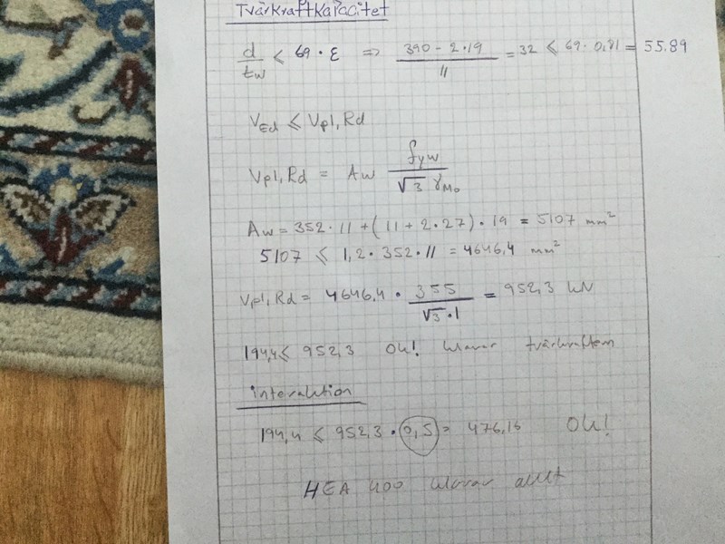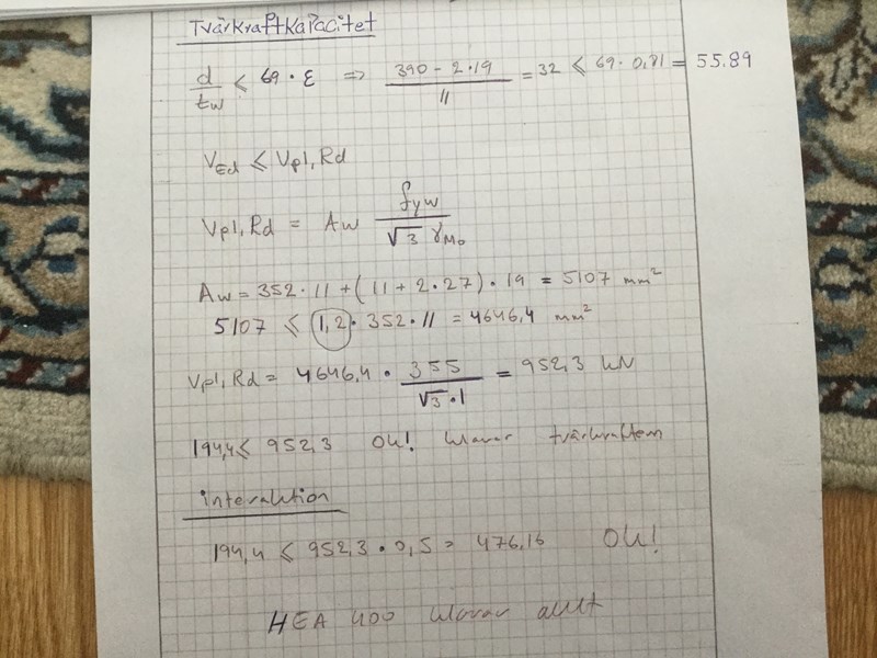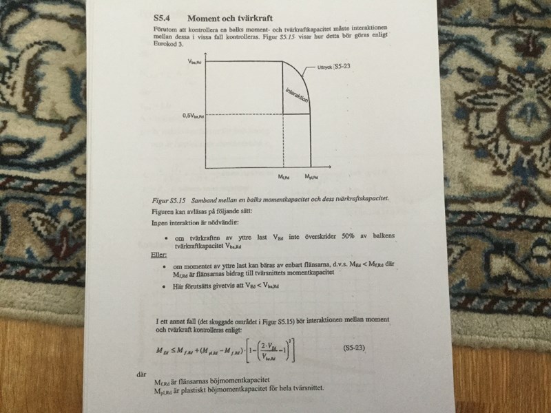 Jag har för engång skull hittat den sidan som har med denna värde och göra och jag vill inte vara besvärlig.sidan 8 jag lägger ut här.Är det så att Tvärkraften av ytter last överskrider 50 % av balken tvärkapacitet.