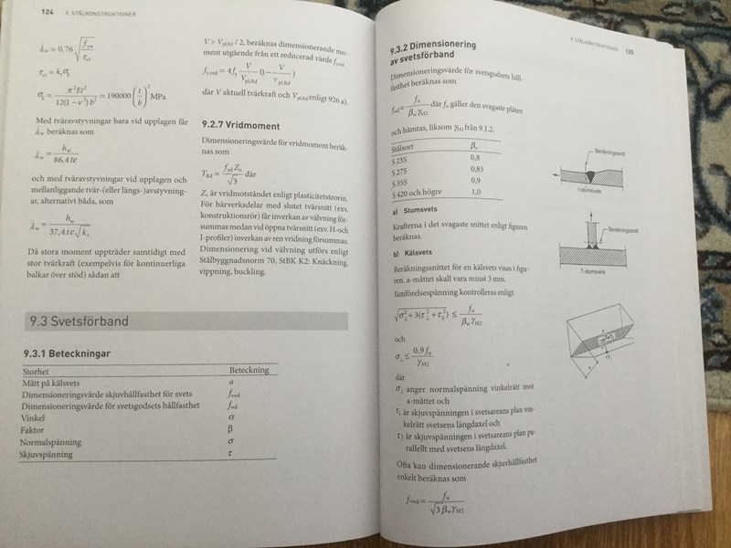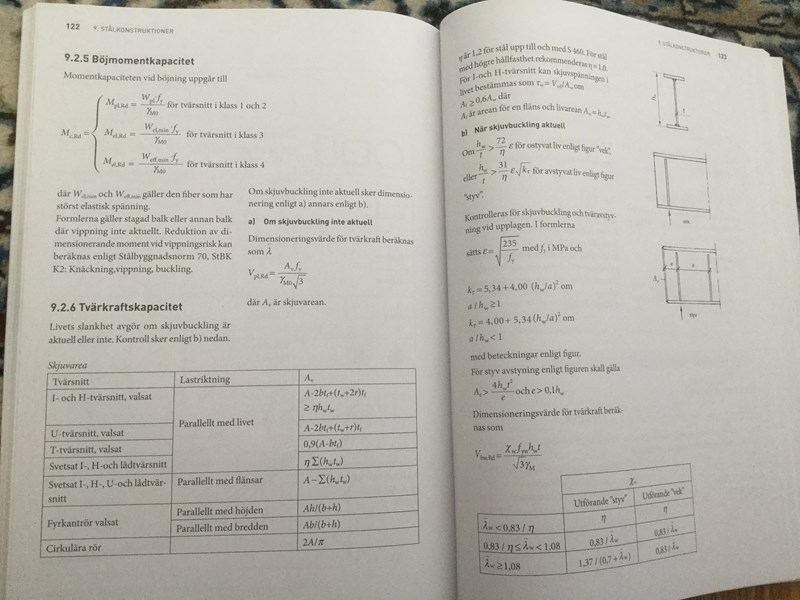 Hej Conny.tack så mycket för din hjälp.vi använder oss av ett häfte som heter1- Formelsamling konstruktion 1 och en häfte till som heter2- Formelsamling Byggnadsmekanik och det viktigast av allt 3-boken Byggformler och Tabeller.Vi använder oxå av lite strukture mekanik bok,men inte mycket.Men de tre första måste man ha med sig för och klara uppgifterna.Kurslitteratur är bärande konstruktioner Del 1.göteborg Institutionen för bygg och miljöteknik ,Avdelningen för Konstruktionsteknik.,så vi har ingen läro bok direkt.De tre som jag nämnde först måste vi ha bara.Conny jag ber så mycket om ursäkt jag tittade sönder mina ögon i den boken som heter Byggformler och Tabeller så hittade jag den på sidan 122 ang Area(liv).Förlåt förlåt förlåt🙏🏻🙏🏻🙏🏻