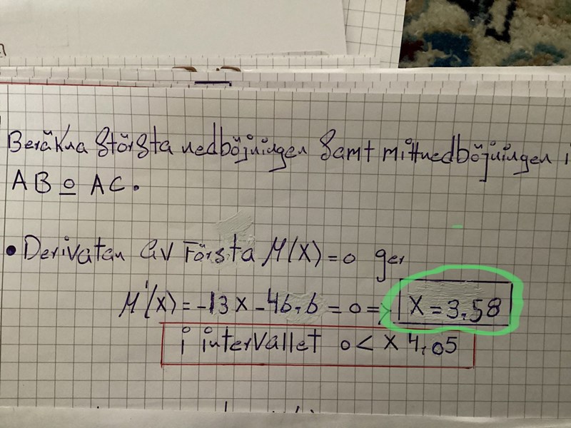 Hej jag undrar om det är rätt svar på Derivatan x=3,58
