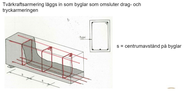 Om vi tittar på bilden så ser du hur en armering kan se ut. I botten ligger ett antal längsgående armeringsjärn, som utgör dragarmeringen. De armeringsjärnen har en längd, något kortare en hela balken. Jag frågade efter balkens längd, men det kanske inte är intressant i det här fallet?