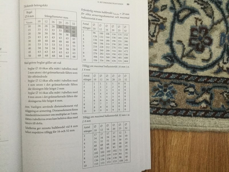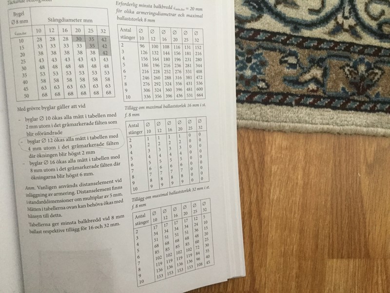 7) I en av tabellerna ser det ut som du valt ett armeringsjärn för balken? Kan du förklara lite mer hur det fungerar?